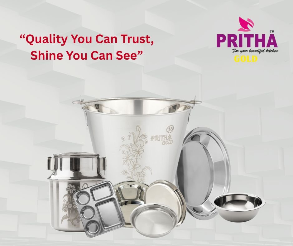 At Pritha Stainless Steel, our mission is to manufacture premium stainless-steel utensils such as plates, paraat, round bhoojan thali , square bhojan thali, raj bhog thali, buckets, milk barni etc., that offer durability, hygiene, and long-lasting performance for every household.