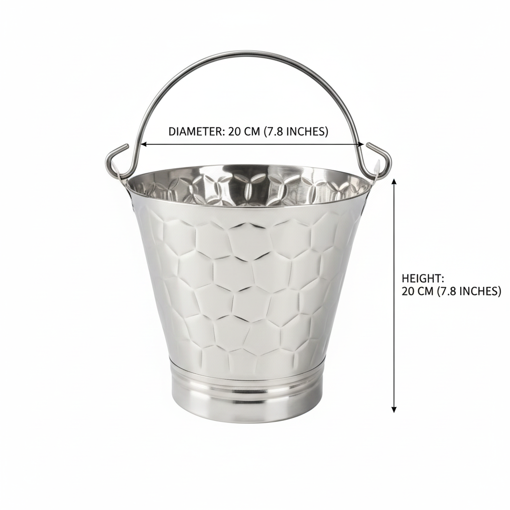 Ideal for kitchens, homes, hotels, temples, catering units, and gifting purposes, Pritha stainless steel buckets combine strength with elegant finishing.